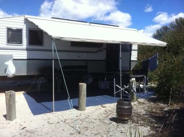 - Aussie Traveller roll-out awning for shaded relaxation